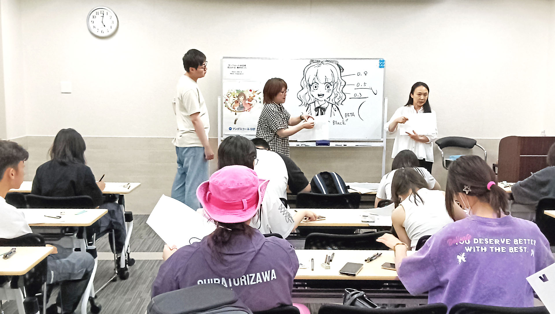 由学习过日本漫画绘画技巧的中国人担任,因此能够准确地翻译讲师所说明的漫画专业术语。